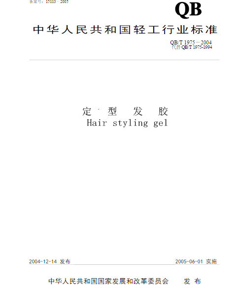 定型發膠 QB 1644質檢報告標準下載,請點擊下載